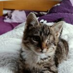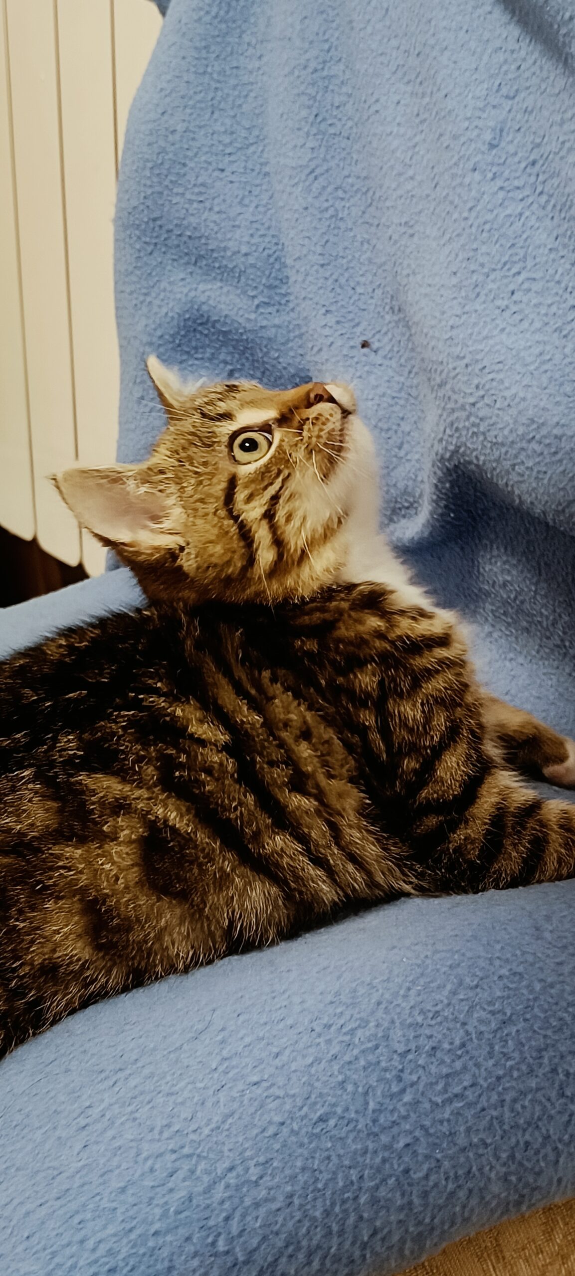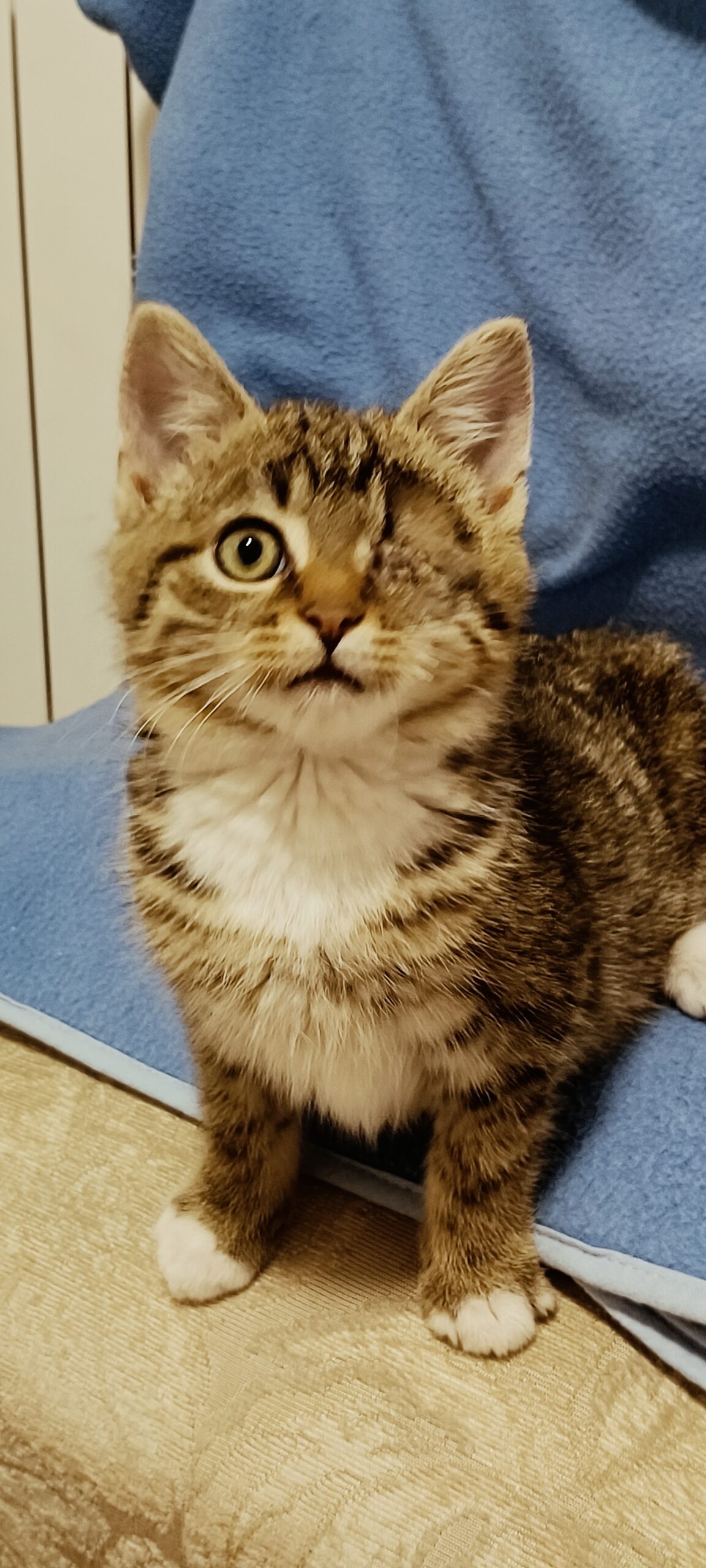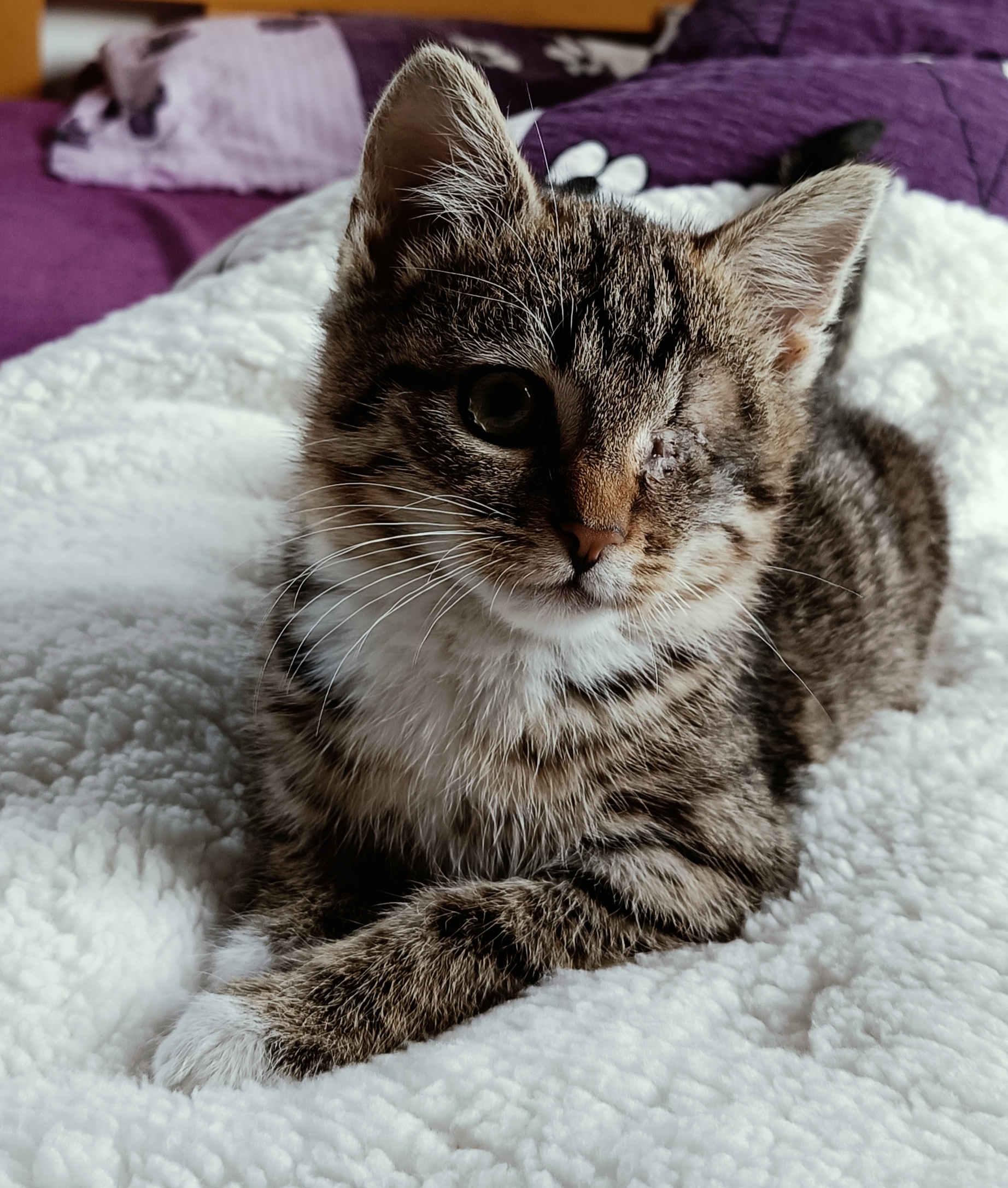 To bardzo milutka, rezolutna, wesoła koteczka. Już przeżyła chwilę bólu, chłodu, bezdomności.