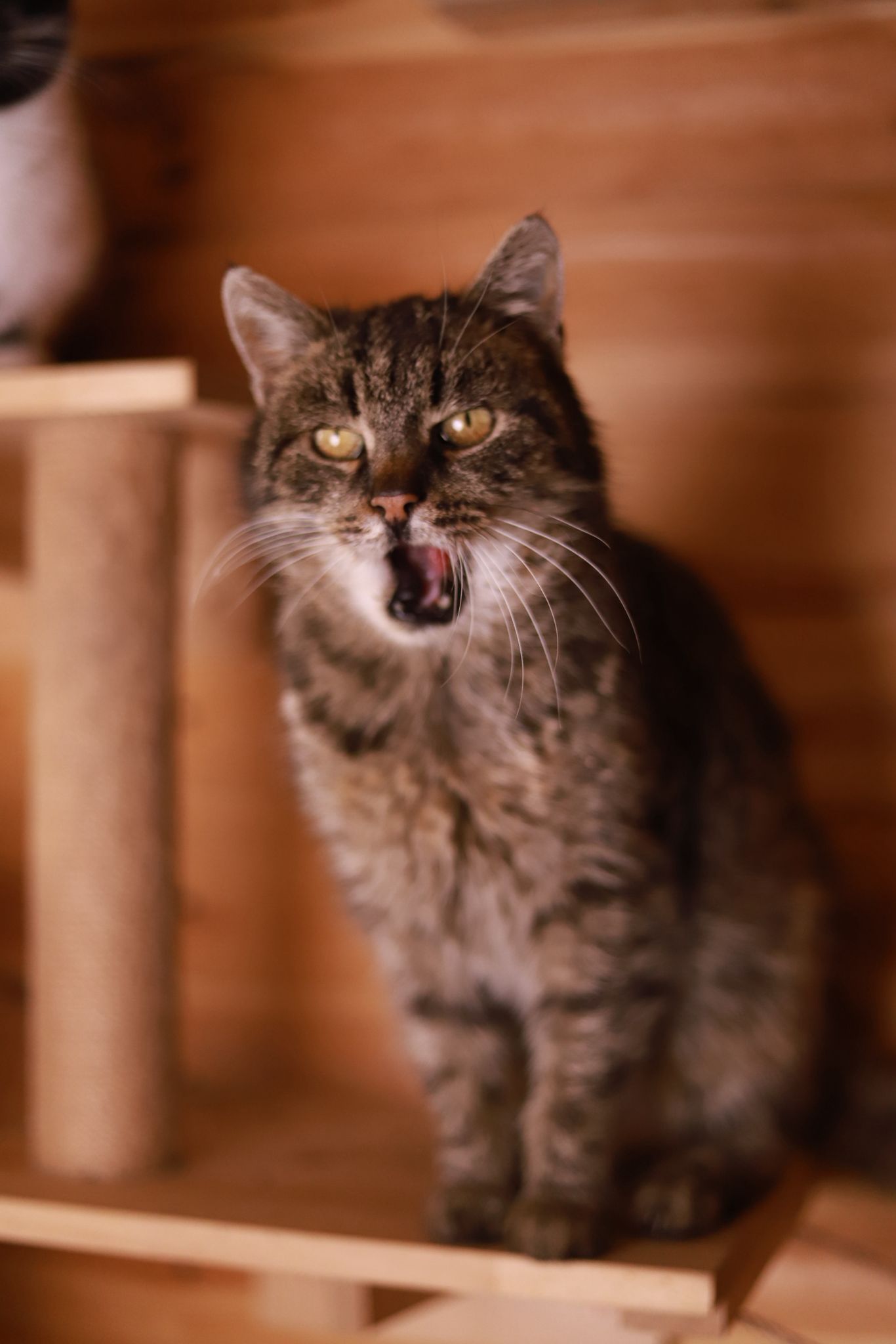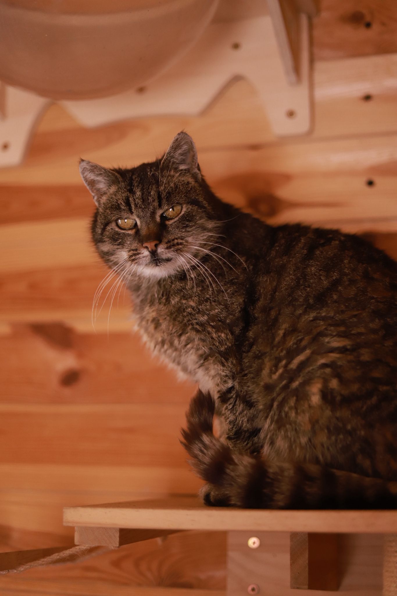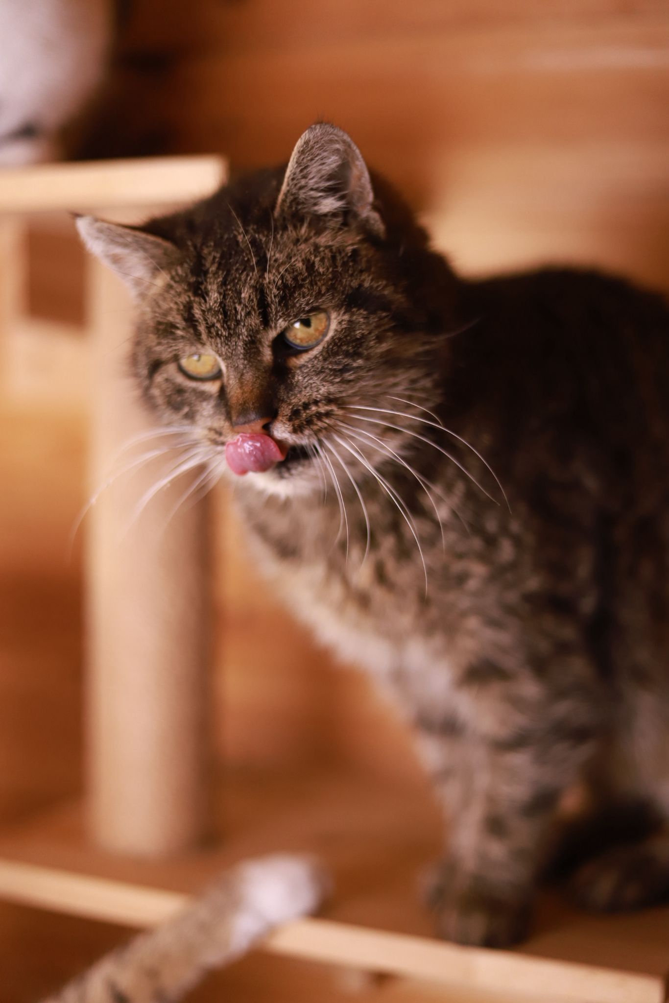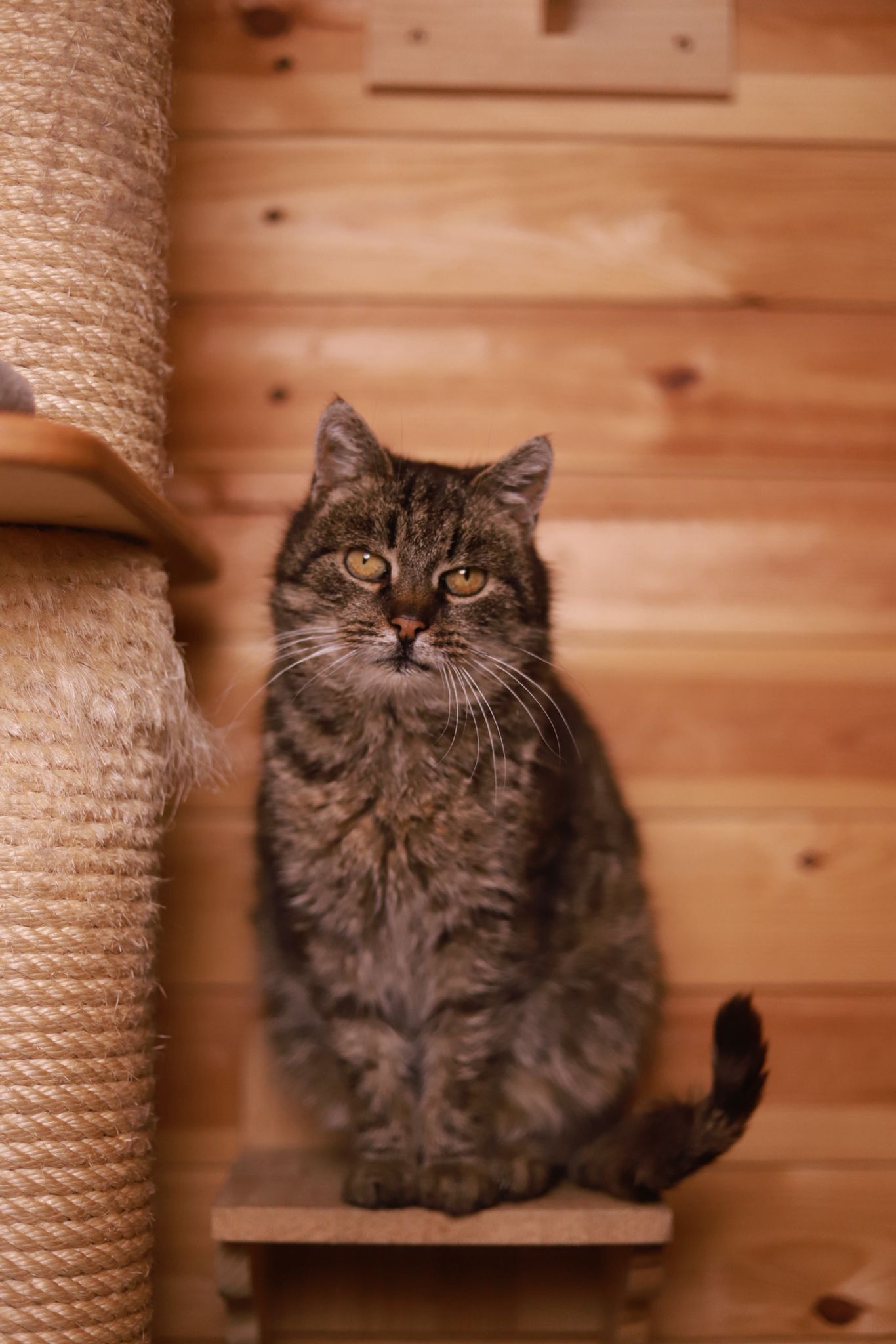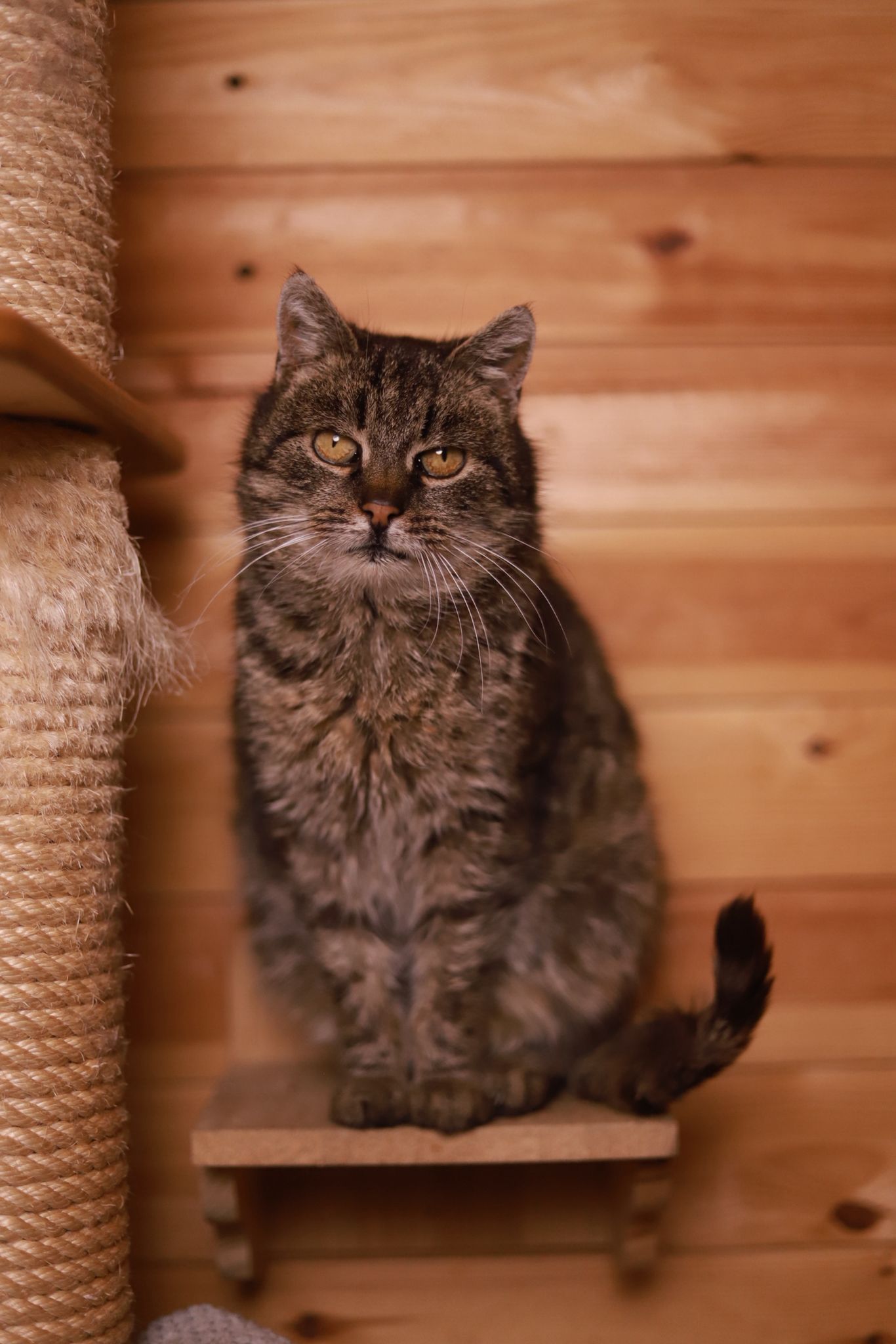 Jest grzeczna, zrównoważona i bardzo lubi być blisko człowieka – przychodzi na głaski, mruczy z wdzięcznością, ale nie narzuca się.