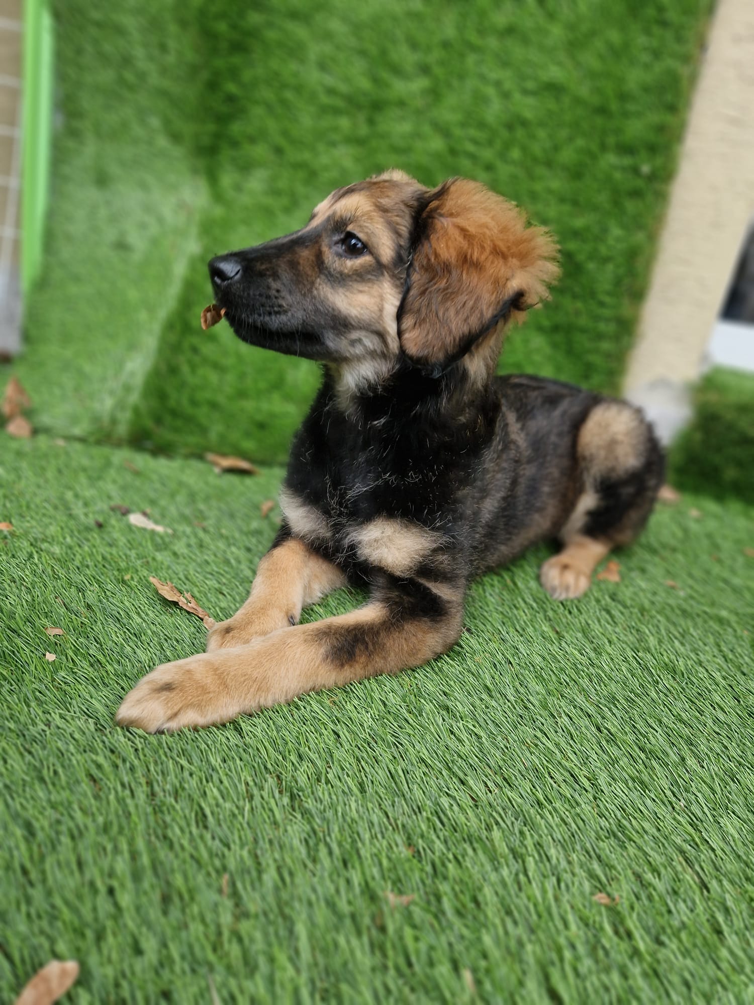Limonka jest miłą, radosną suczką. Szybko ucz się nowych rzeczy, opanowała już chodzenie na smyczy. Jest w trakcie nauki czystości w domu. Docelowo będzie średnim pieskiem.