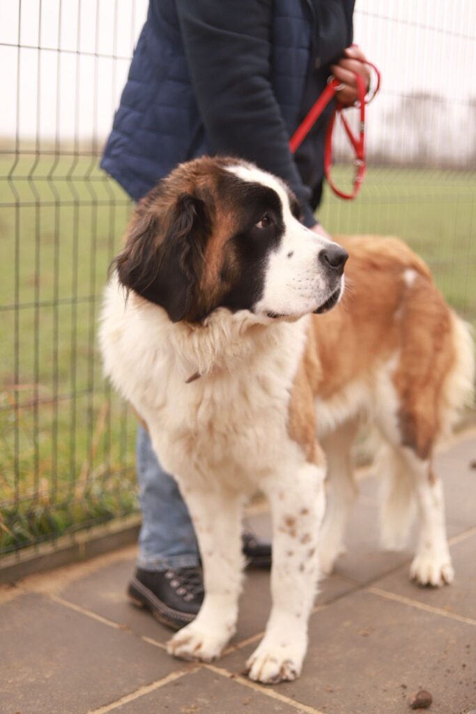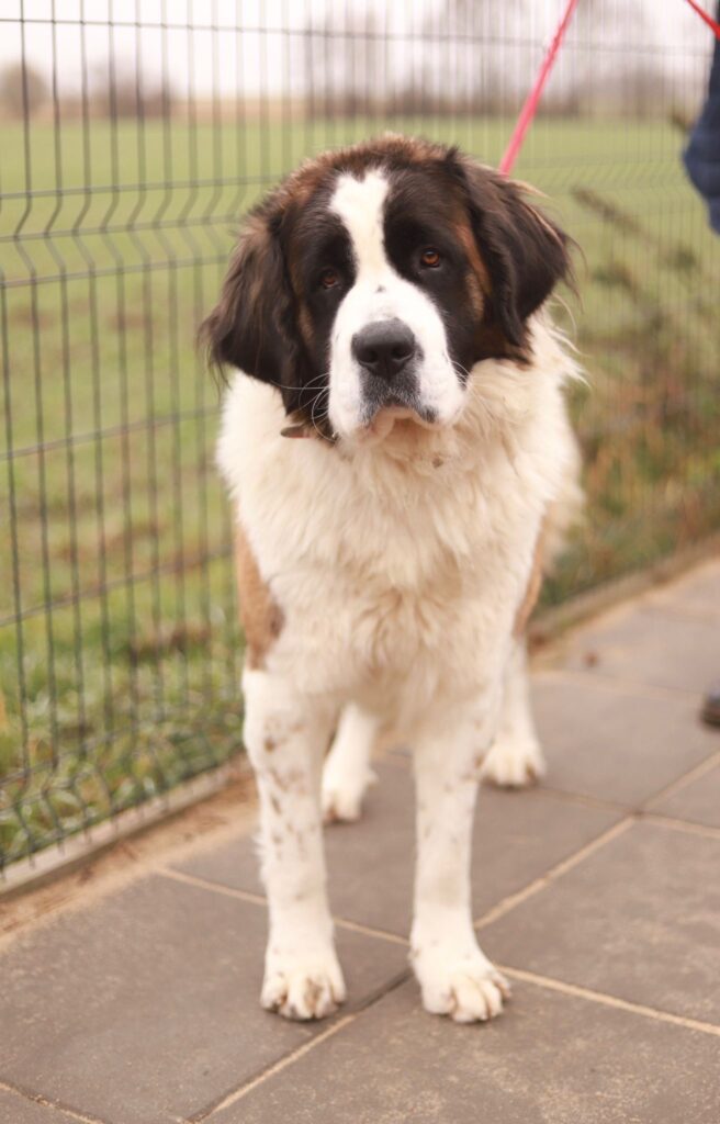 Poznajcie Mefi naszego kochanego bernardyna! Ma 3 lata i całe serce gotowe na nowy, kochający dom. To prawdziwy gigant o łagodnym usposobieniu – cierpliwy, spokojny i niezwykle przywiązany do ludzi. Uwielbia spędzać czas z opiekunami, głaskanie i obecność w domu.